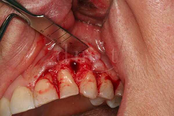 La paziente presentava una escrescenza ossea (esostosi) in zona 2.2 e 2.3 che è stata rimossa mediante l’utilizzo del piezosurgery.