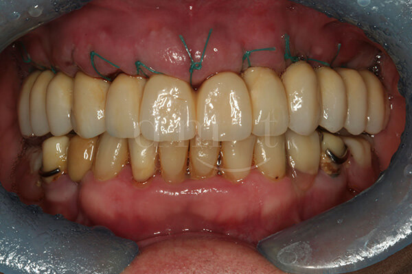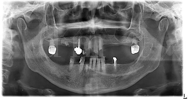 Nell’arcata inferiore sono stati recuperati diversi elementi dentali e riabilitate le parti edentule con riabilitazioni implanto protesiche.