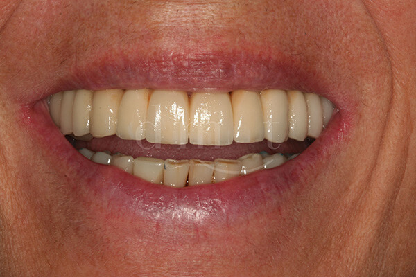 Il caso è stato ultimato con una protesi fissa in metallo ceramica supportata da 6 impianti di cui quelli in posizione 1.6 e 2.6 inseriti con intervento di mini rialzo di seno mascellare.